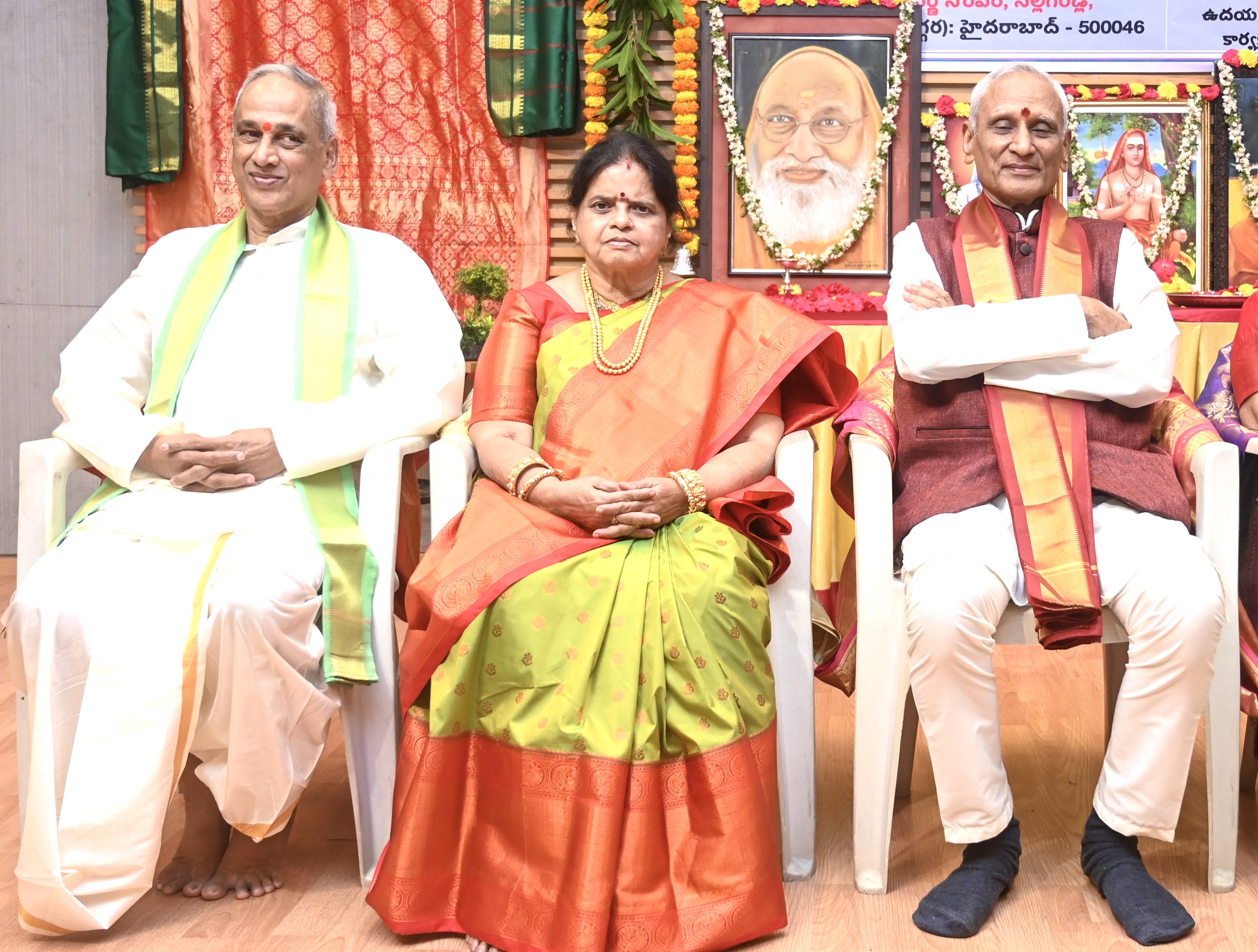 Slowly the teaching spread to three groups - Daya Satsang, Arsha Anand Kuteer, Vedanta Senior Citizens. Since the couple have been in teaching field and since their bent of mind is same, they always shared their interests and ideas. Hence Rajya Sri Garu too joined hands with him in teaching Advaita Vedanta and both together completed teaching of Prastana Trayam. They won the hearts of their Satsang members, who fondly called them Guru Dampathulu.